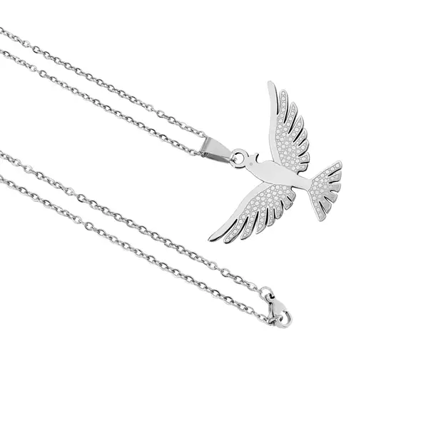 Esta Corrente com Pingente do Divino em aço inoxidável traz o símbolo sagrado do Espírito Santo para seu dia a dia. O pingente representa a pomba do Divino, mensageira da paz e da presença de Deus, em uma peça cheia de significado espiritual e elegância. Perfeita para quem busca unir fé e estilo de forma harmoniosa.