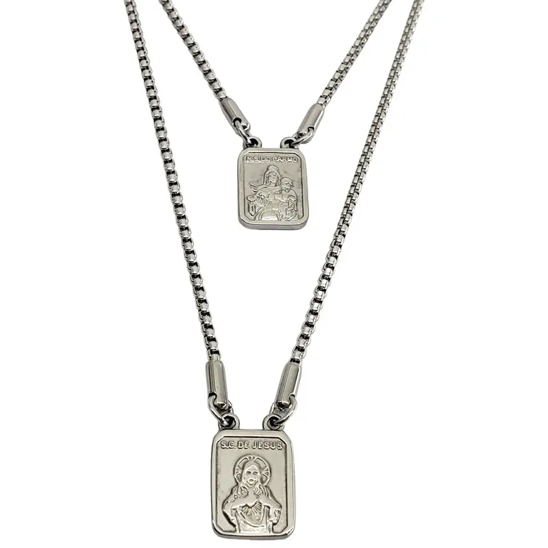 Escapulário Sagrado Nossa Senhora Do Carmo E Coração De Jesus Em aço inox