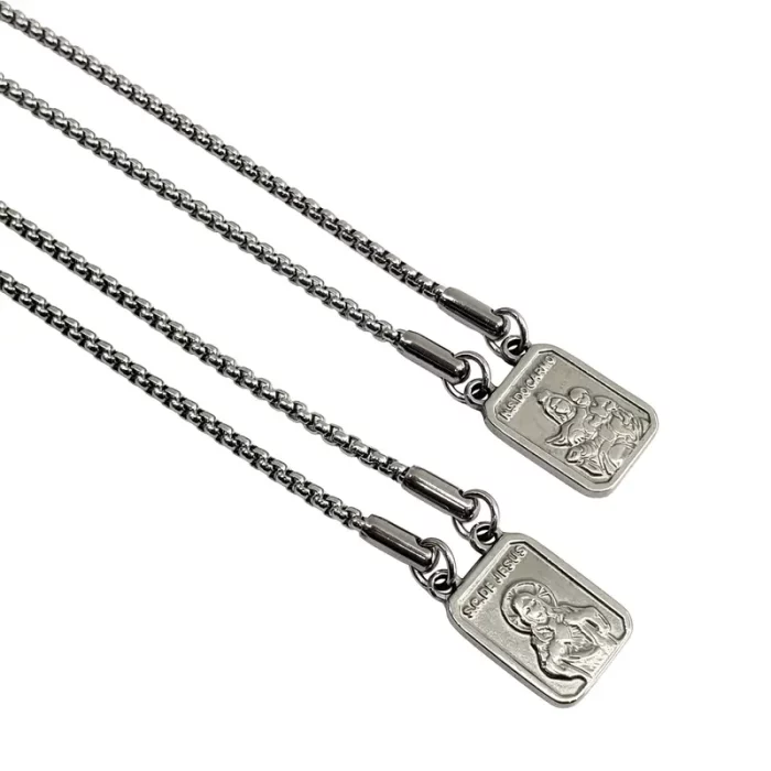 Seja o primeiro a avaliar “Escapulário Sagrado Nossa Senhora Do Carmo E Coração De Jesus Em aço inox”