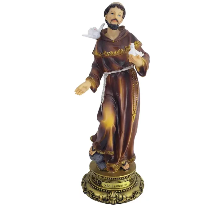 Símbolo Universal de Paz e Ecologia: São Francisco transcende a religião, sendo um símbolo mundial de paz, cuidado com os animais e respeito ao meio ambiente. Sua imagem traz uma energia de simplicidade voluntária e alegria genuína para qualquer espaço.