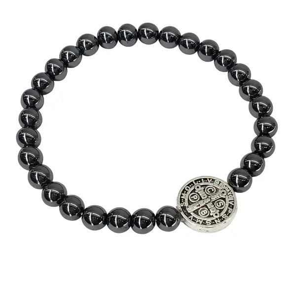 Apresentamos a Pulseira de Hematita Elástica com São Bento, um acessório espiritual projetado para oferecer proteção poderosa e equilíbrio com o máximo de conforto e praticidade. Mais do que um item de estilo, esta pulseira é um escudo energético diário, unindo a força tradicional da Medalha de São Bento às propriedades estabilizadoras da pedra Hematita.