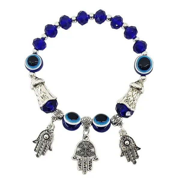 A Mão de Hamsá, também conhecida como Mão de Fátima, é um símbolo milenar de força, proteção e afastamento do mal. Combinada com o Olho Turco, um dos amuletos mais poderosos contra energias negativas e inveja, esta pulseira forma uma barreira espiritual única. Leve com você uma fonte de boa sorte e tranquilidade para todos os momentos do seu dia.