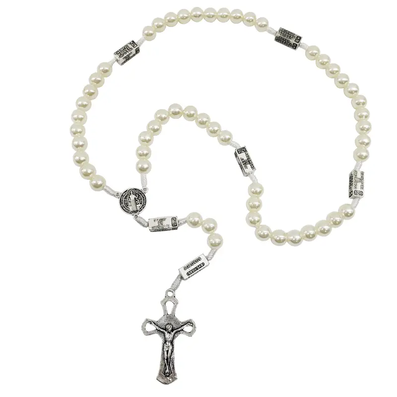 Apresentamos o Terço para Contemplação dos Mistérios em Pérola com Medalha de São Bento, uma peça sacra que une a serenidade clássica das contas de pérola à poderosa proteção espiritual de um dos santos mais venerados. Este terço é mais do que um instrumento de oração; é um companheiro para momentos de profunda reflexão e conexão espiritual, seja durante a recitação do Santo Rosário ou em suas orações pessoais.