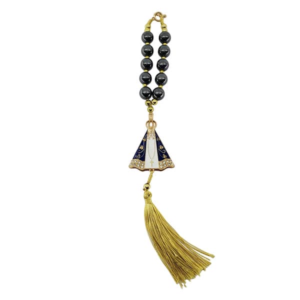 = Terço Retrovisor Carro Nossa Senhora Aparecida Hematita =